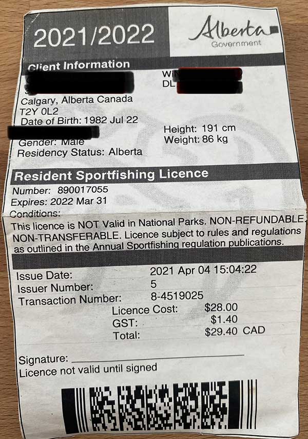 To fish in the Bow River, you must have the following 2 legal documents, a valid Wild Identification Number (WIN) card and the Alberta fishing license. Both can be purchased online here or from a licensed vendor such as CanadianTire, Cabela, BassPro to name a few. The cost for the WIN card online is $8.00 and the fishing license is $28.00.